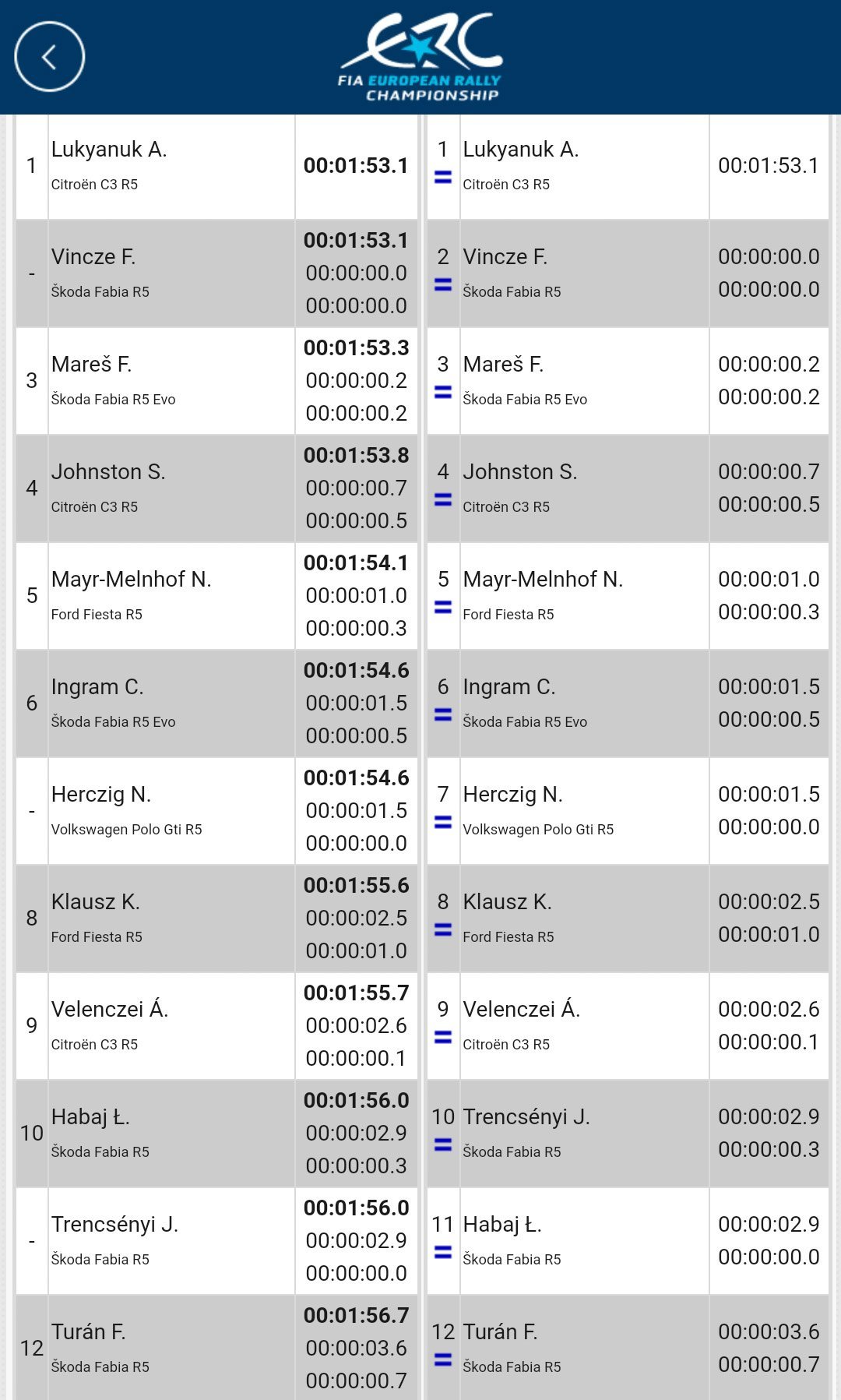 Il pilota russo trova quindi la partenza che cercava, distanziando (se pur di poco) il britannico Chris Ingram ( Skoda Fabia R5 EVO) e il polacco Łukasz Habaj ( Skoda Fabia R5), quest’ultimo autore in mattinata di un’uscita di strada nel corso dello shakedown.