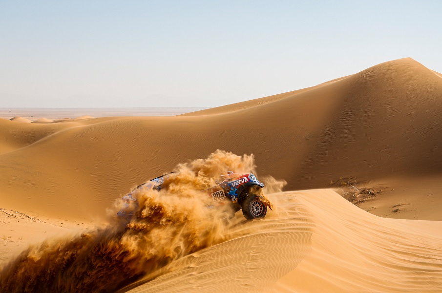 Dune, dune, dune: le abbiamo aspettate per metà gara e finalmente sono arrivate, rendendo l’atmosfera della gara più vicina ai tempi in cui la maratona del motorsport attraversava il Sahara per arrivare sulle spiagge del Senegal.