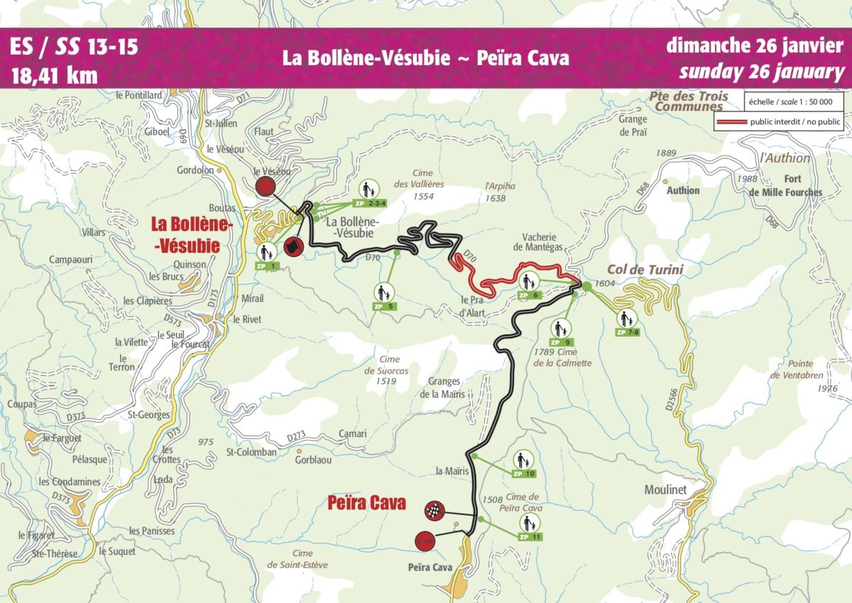 Disputata quindici volte in senso inverso negli anni d’oro del rally tra il 1980 e il 1999, la prova è stata riproposta nel 2017 e nel 2018, mentre nella passata edizione non si è disputata. Dopo una partenza di rapida ascesa, la strada si arrampica fino al Col des Sagnes (1184 m), per poi scendere verso Turrier e Bellaffaire con carreggiata che si allarga e andatura che diventa piĂą ritmata. Il finale è molto tecnico, con strada che si restringe con il rischio che si possano trovare diverse lastre di verglas.