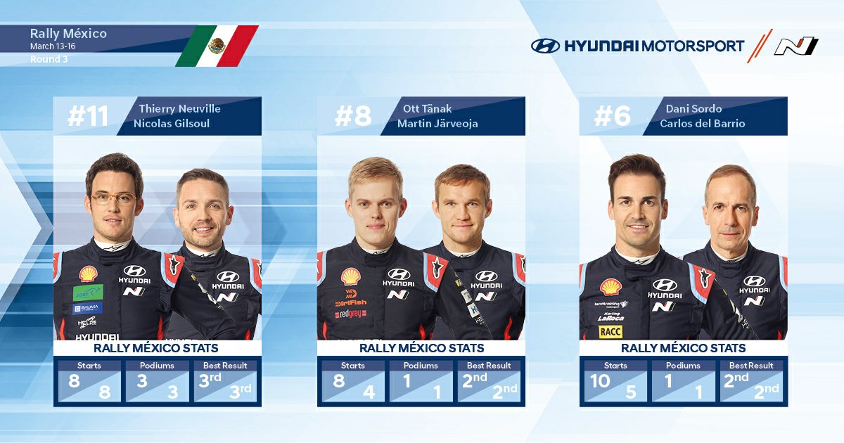È stata ufficializzata la line-up di Hyundai Motorsport per il terzo appuntamento iridato di questo 2020, il Rally del Messico.
