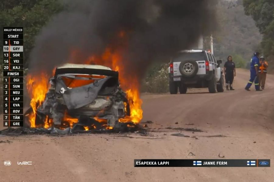 I finlandesi fino al quel momento si trovavano al quarto posto non molto distanti dalla zona podio. Nonostante gli sforzi per salvare l’auto non c’è stato niente da fare. Un brutto colpo per il team M-Sport, ma la cosa positiva e che tutti sono usciti illesi dall’incidente.