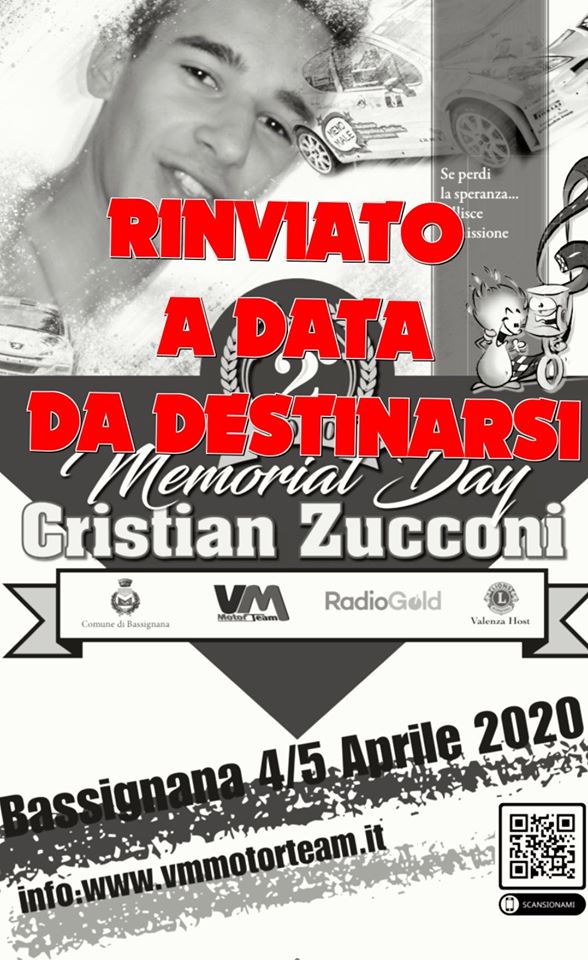 Il 2°Memorial Cristian Zucconi, in programma per il 4 e 5 Aprile prossimi a Bassignana, è rinviato a data da destinarsi.