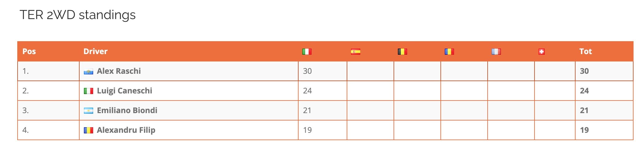 Tra le 2WD successo per il sanmarinese Alex Raschi su Peugeot 208 R2. Il pilota del Titano autore di una prova maiuscola precede Luigi Caneschi e l’argentino Emiliano Biondi. Quarto il romeno Alexandru Filip.