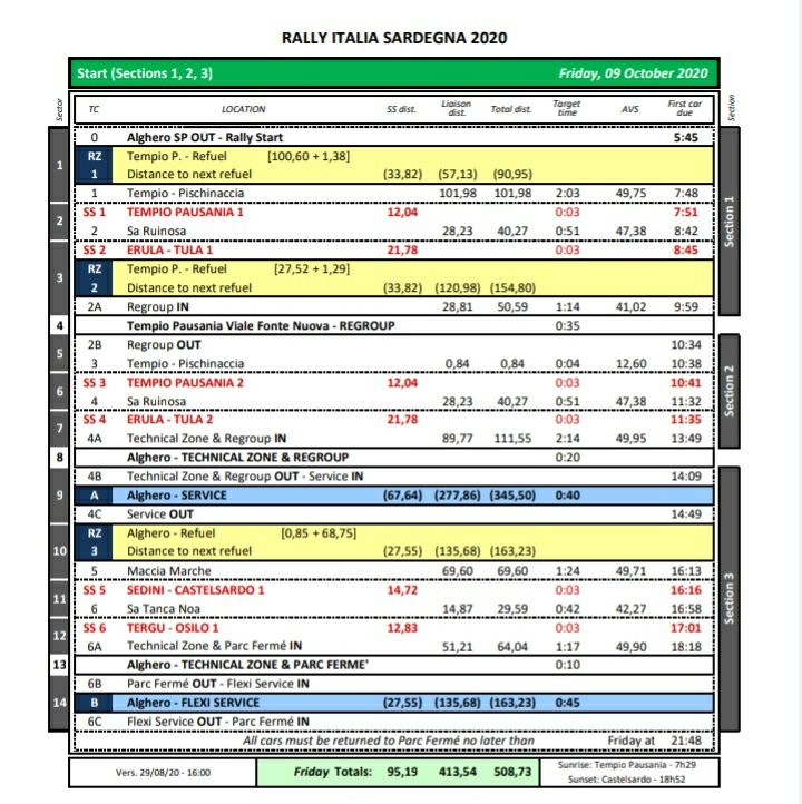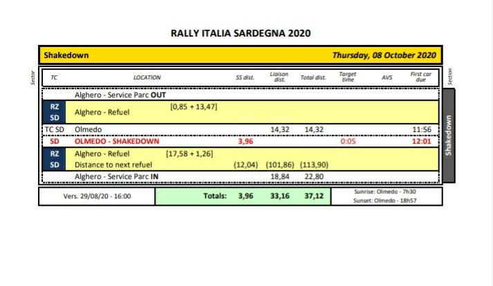 Il via alla gara giovedì 8 ottobre con lo shakedown, che si svolgerà ad Olmedo a partire da mezzogiorno, orario inedito per la gara sarda.