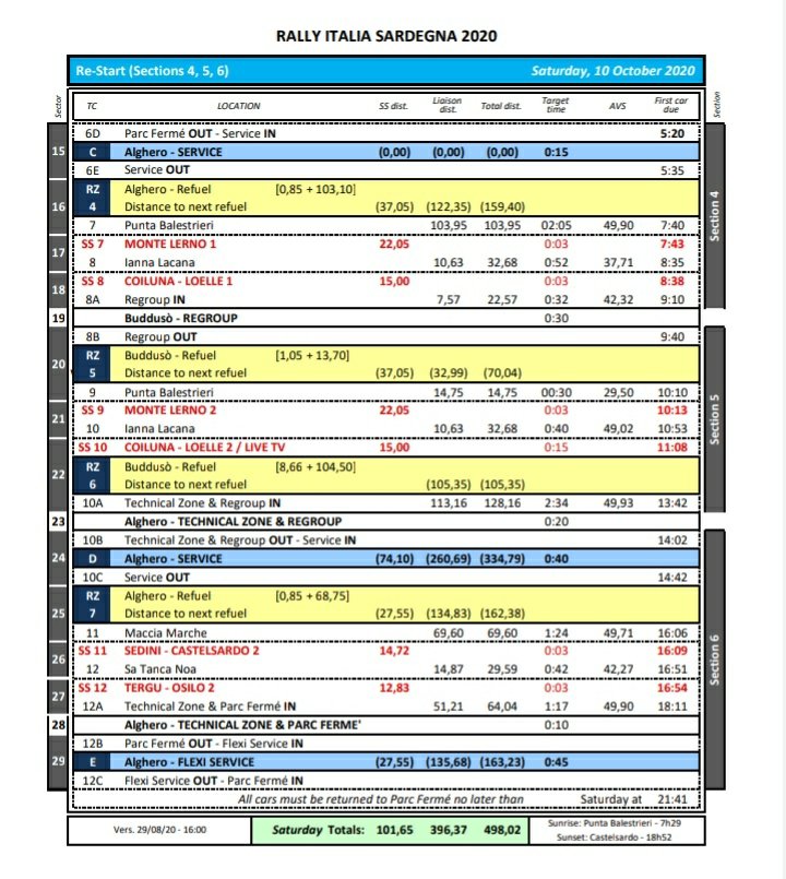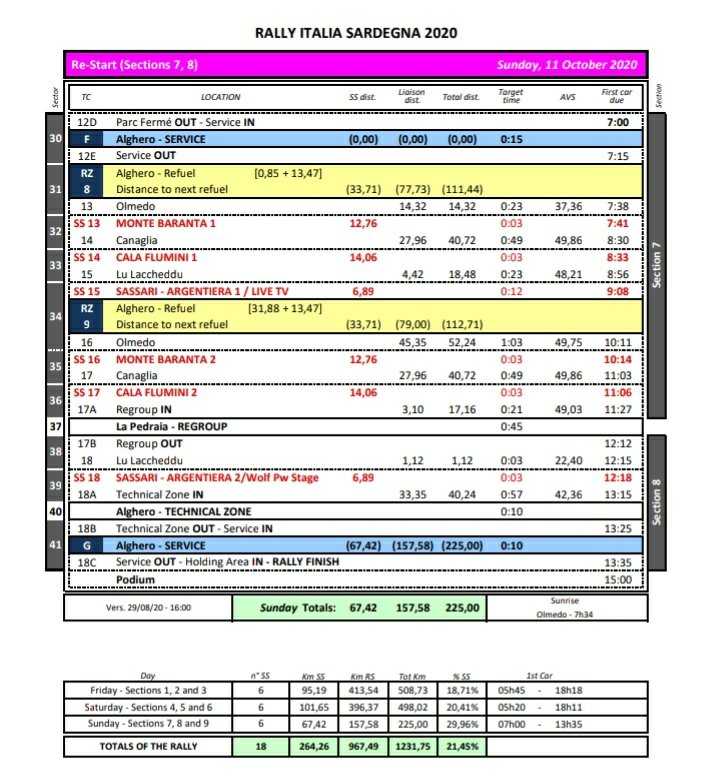 Cambiamenti anche nella giornata di domenica, con Monte Baranta che entra nel loop di prove assieme a Cala Flumini e all’Argentiera che fungerĂ anche per questa edizione da power stage.