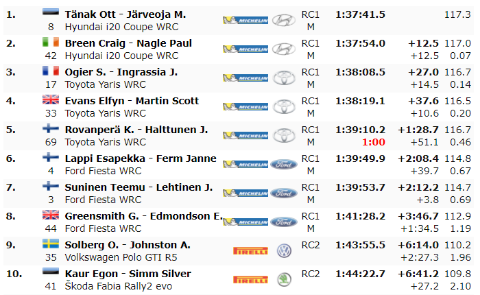 Qui di seguito la classifica ufficiale della mattinata, tratte da ewrc-results.com
