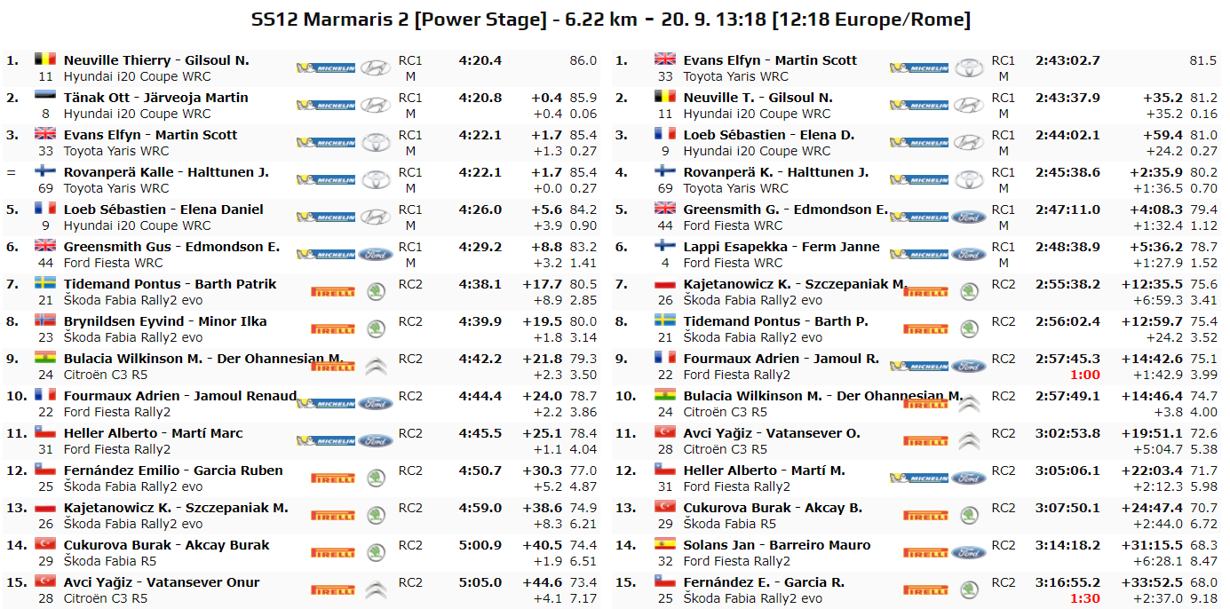Nella generale non cambia nulla, con Evans che nonostante la terza posizione nella power stage, non ha problemi a mantenere la testa della corsa, andando a vincere la gara. Seguono come anticipavamo, Neuville, Loeb ed un bravissimo Kalle Rovanpera.