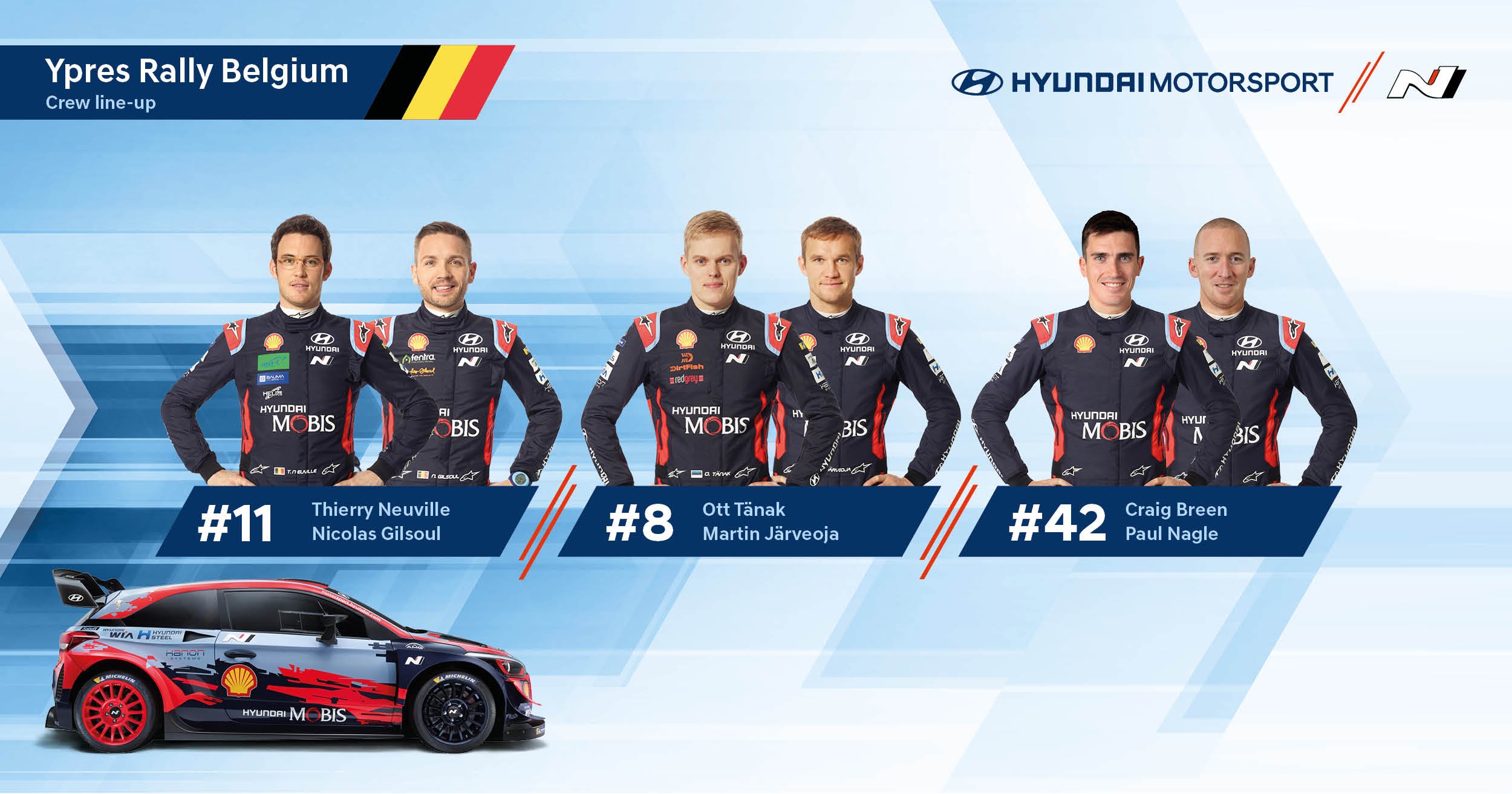 Con un breve comunicato stampa, Hyundai Motorsport ha ufficializzato la line-up per l’ultimo (al momento) appuntamento iridato. Ad Ypres, il team coreano schiererà come di consueto tre vetture, affidandole al padrone di casa Thierry Neuville, all’estone campione in carica Ott Tanak e all’irlandese Craig Breen.