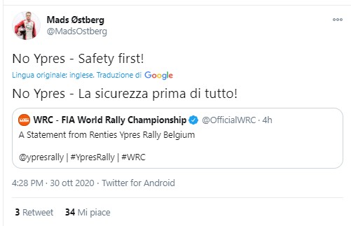 Unanimi i commenti dei piloti del Mondiale WRC sulla cancellazione del Ypres Rally. La parola chiave usata da tutti gli equipaggi è stata prima la sicurezza, dando prova di grande maturità e sottolineando e applaudendo (se pur con grande rimpianto) alla notizia del rinvio della gara belga.