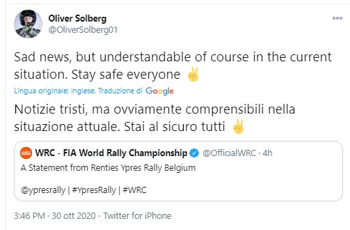 Della stessa opinione, anche il giovane Oliver Solberg, che ad Ypres doveva portare in gara la Skoda Fabia rally2: