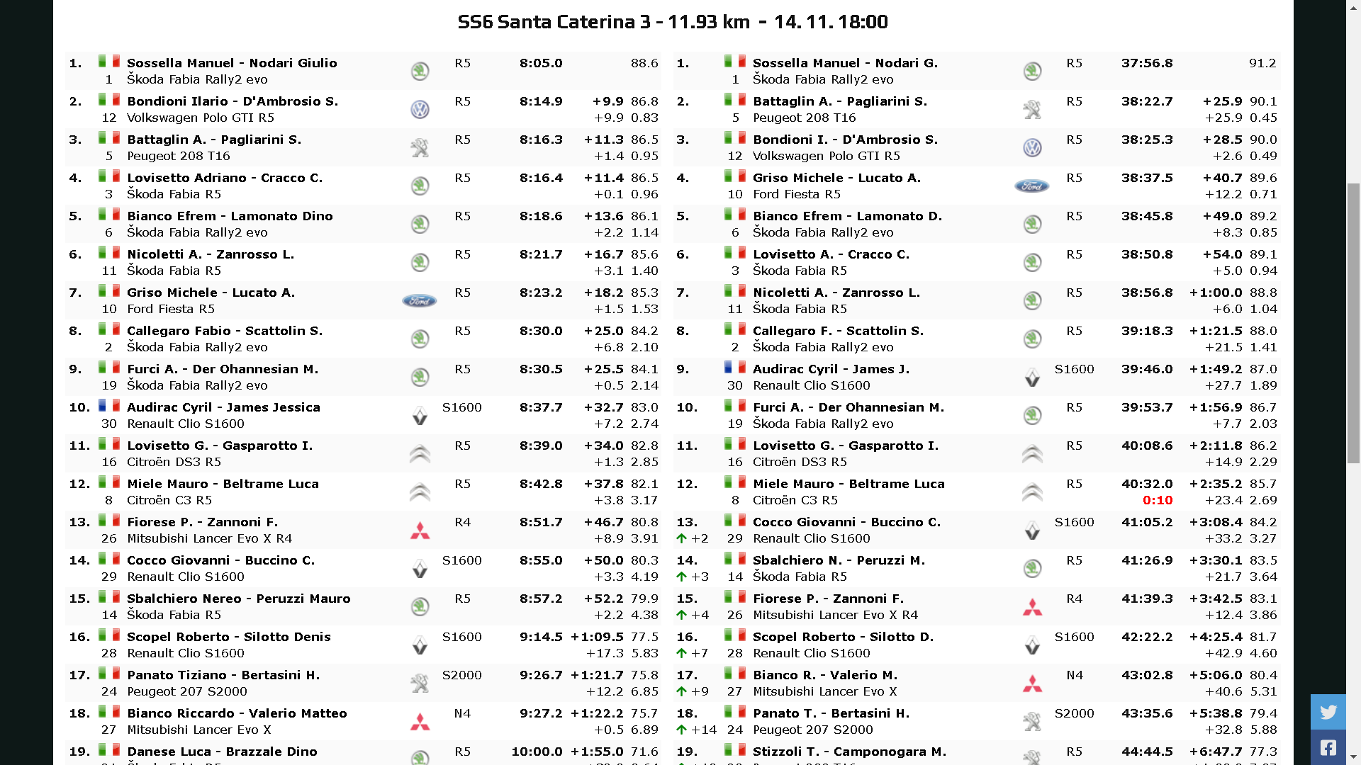 Tre PS è durata la leadership di Paolo Oriella e Sandra Tommasini: nella quarta la chance di portare la Fabia by MS Munaretto svanisce. Ne approfitta Manuel Sossella, lesto come il felino col casco della Scuderia Palladio adesivato sulla sua céca; il distacco dal secondo diventa 11″, poi 14″ ed infine 25″ sul palco finale: è vittoria numero 24 per il campione CIWRC 2015 in coppia con il giovane Giulio Nodari.