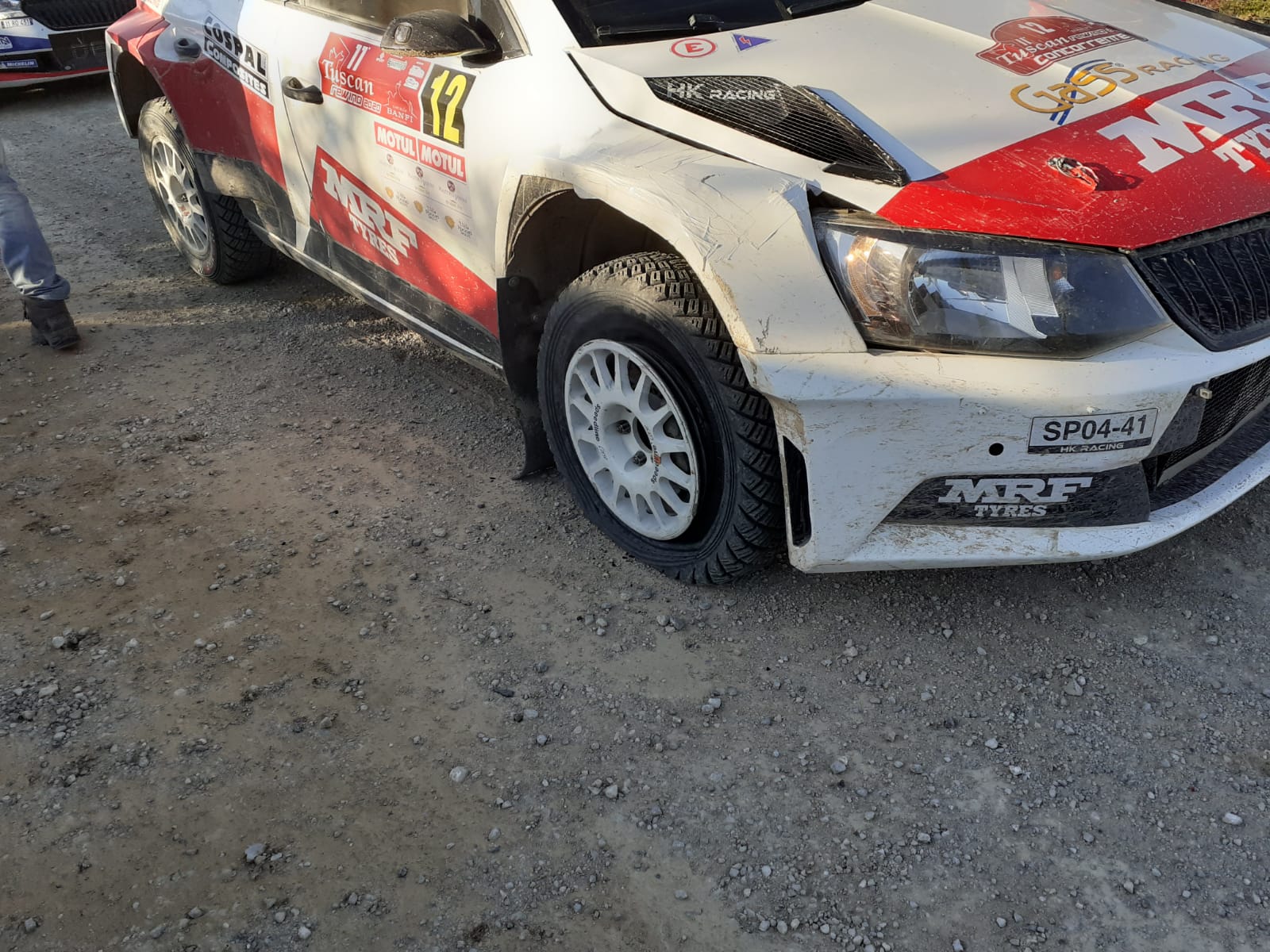 Non va meglio all’altra Skoda Fabia di Emil Lindholm e Mikael Korhonen: l’anteriore destra marchiata MRF sembra essere dechappata oppure forata a pochi kilometri dalla fine dei 9,14 della ‘Castiglion del Bosco‘.