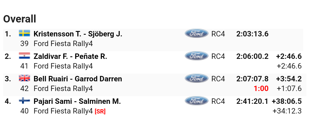 Chi ha stupito per i suoi tempi è stato Sami Pajari. Il finlandese, dopo il ritiro nella giornata di ieri, si è ripresentato in grande spolvero facendo aumentare il rimpianto per quello che poteva essere e non è stato. Tornando a Kristensson la strada verso il titolo di categoria si fa sempre più in discesa dopo il ritiro dei suoi più accreditati rivali.
