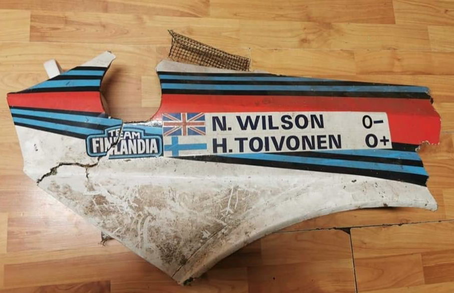 Sembra che una persona, parlando al lavoro di rally e di gruppo B, abbia confidato agli amici di avere da qualche parte in garage, in mezzo ad altre cianfrusaglie, un pezzo di una macchina di quell’epoca raccolto ad una gara. Bene, il pezzo si è rivelato essere qualcosa di eccezionale, un pezzo di rara importanza storica (rallystica), visto che si tratta di un particolare di carrozzeria montato sulla vettura che vinse, all’esordio, con lo sfortunato pilota finlandese, amatissimo da tutti gli appassionati.