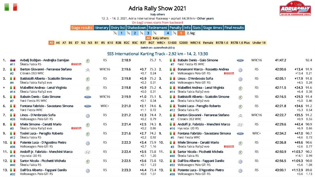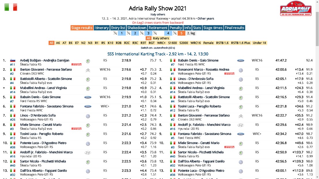 Adria Rally Show – Babuin vince la prima gara in Italia del 2021