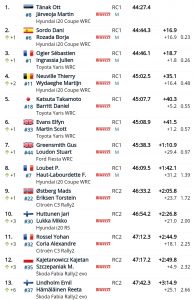 In quarta piazza un Neuville in sottotono che dopo aver vinto lo Shakedown ieri, non ha trovato nessun spunto degno di nota questa mattina trovandosi ad inseguire con un ritardo di oltre 35 secondi. Stessa medesima cosa per gli altri due alfieri Toyota Katsuta/Evans, lamentando condizioni difficili e scarso feeling con la vettura. L’unico superstite Ford Greensmith si difende con tutte le forze che ha in settima piazza, completando una mattinata di tutto rispetto.