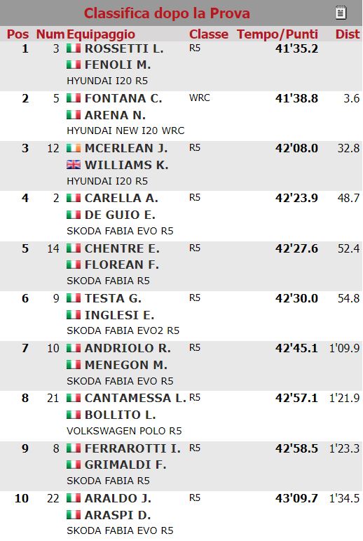 Al momento il distacco che lo separa da Rossetti, leader della gara, è solo di 3,6 secondi. Pochi nonostante siano rimaste solo 3 prove.