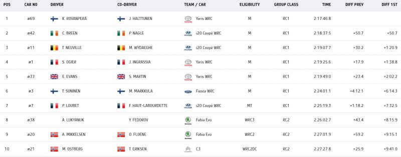 Kalle Rovanperä ha condotto una gara di maturità e di grande talento. Forse ne ha meno della Hyundai numero 8, però non perde mai la concentrazione e ha sempre i nervi ben saldi rimanendo sempre al vertice della classifica generale. Breen sembra non essere un grosso problema oggi, il distacco è di diversi secondi, ma tutto può succedere nella giornata conclusiva di domani.