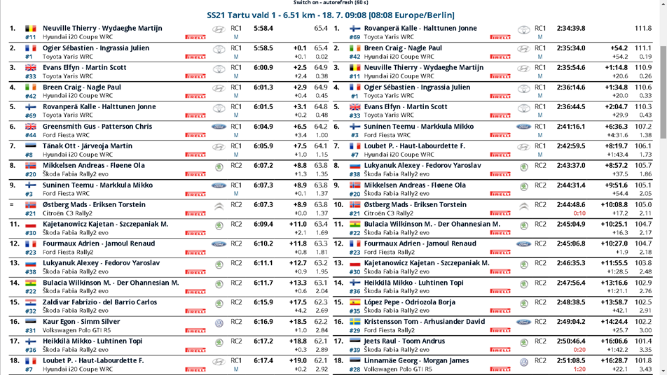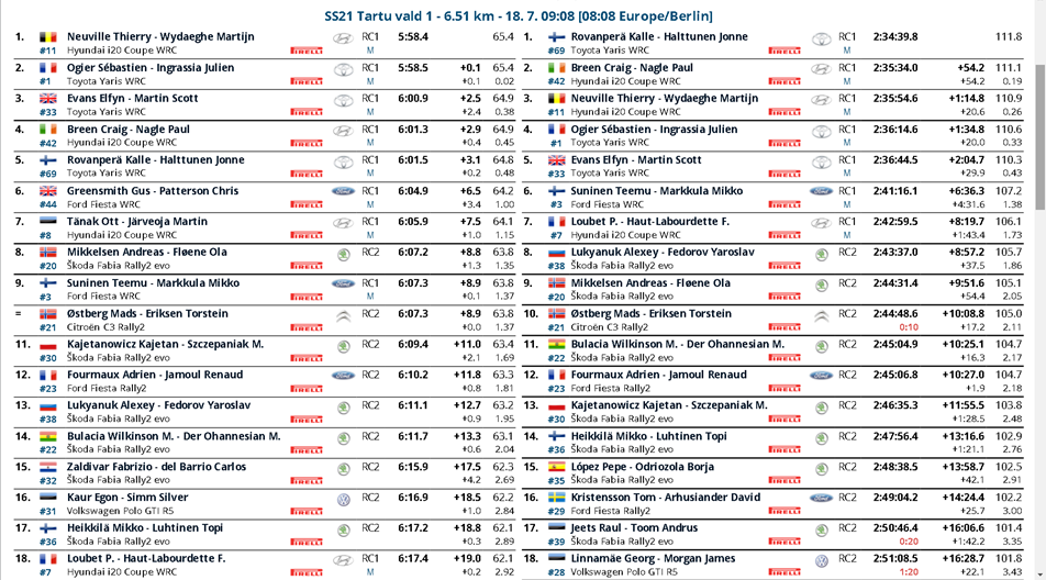 Breen e Neuville vanno di crociera per cercare punti utili al Costruttori: inoltre per il belga nella Power Stage di Tartu Vald sarà vitale tenere la Yaris di Ogier dietro per cercare di fare tutto il possibile per riaprire un Mondiale molto difficile.