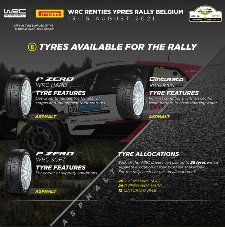 Il Rally di Ypres è famoso per il suo asfalto scivoloso e, per questo motivo, molti equipaggi preferiranno la mescola morbida. Dall’altro lato dobbiamo ricordarci di essere a metà agosto, per cui potremo trovare temperature elevate o violenti piogge, come l’alluvione avvenuta qualche settimana fa. Anche il responsabile della sezione Rally di Pirelli, Terenzio Testoni, ha espresso i suoi dubbi a riguardo: