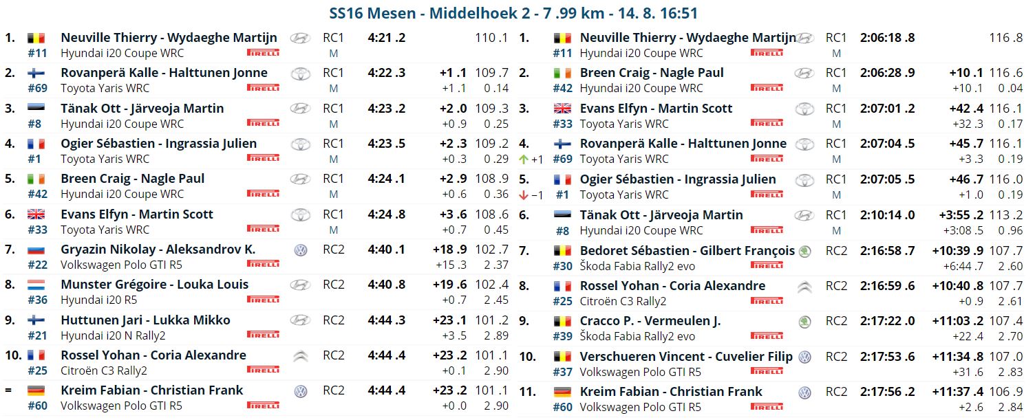 Così il pilota belga dopo l’ultima prova di giornata SS16 Mesen – Middelhoek 2 da 7 .99 km: