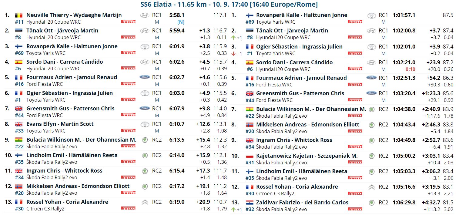 La prova speciale è stata vinta dal finlandese Kalle Rovanpera che ha preceduto di soli 8 decimi l’estone Tanak, mentre terzo giunge Ogier a +3.2 che ha svolto un ottimo lavoro in qualità di apripista.