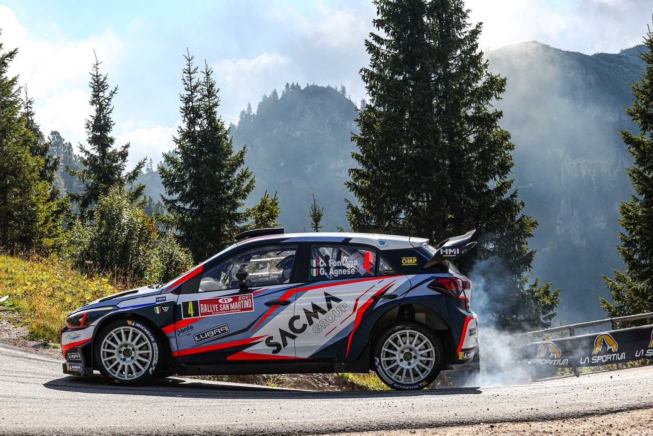 Peccato davvero perché nel primo giro di prove speciali, tutte molto lunghe e velocissime, Corrado Fontana era a pochi secondi da Pedersoli, autore di una gara sempre all’attacco a bordo della Citroen DS3 WRC. E proprio nella ripetizione della prova più lunga, la leggendaria “Manghen”, Corrado Fontana e Giovanni Agnese hanno dovuto dire addio alle ambizioni di vincere il Rally e di lottare per il Campionato.
