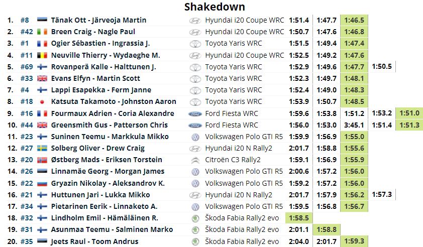 La gara scandinava ha aperto i battenti con il canonico shakedown da 4 chilometri allestiti presso la cittadina di Vesala dove il più veloce è stato Ott Tanak.