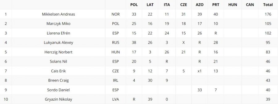 Certo, la matematica ci dice che ci sono ancora teoricamente 80 punti in palio in 2 gare, ma il vantaggio del norvegese è ormai di 71 punti, per cui gli basterebbe “fare presenza” arrivando nei primi 10 anche in una sola gara per vincere matematicamente. Per di piĂą il suo piĂą vicino inseguitore è Miko Marczyk, un giovane pilota di sicuro talento, ma ancora lontano dalla velocitĂ di Mikkelsen.