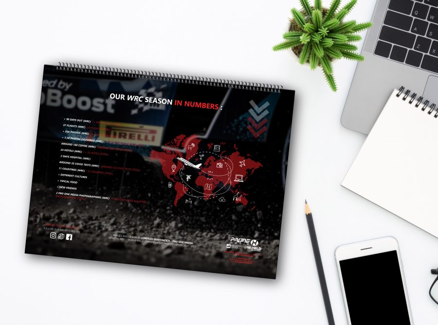 Siamo quindi molto contenti di presentarvi il “Calendario 2022 by Pro One Media” dedicato al WRC, le foto più belle e caratteristiche della stagione in fronte e retro. Layout 30×40 con un nuovo design ed inclusi nella confezione anche gli adesivi “RallyPeople” in omaggio