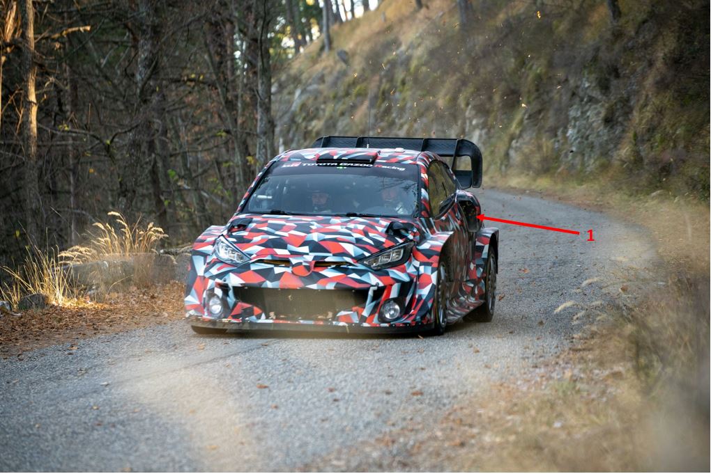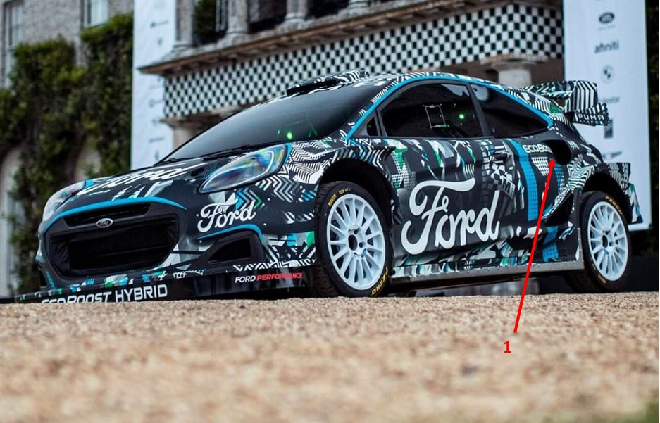 M-Sport Ford è stata la prima a rivelare la nuova arma in configurazione Rally1. Fin dalla presentazione della nuova Puma, avvenuta al festival di Goodwood, sono state introdotte delle prese d’aria di forma all’incirca circolare (1 in figura sotto), posizionate sopra al passaruota posteriore all’altezza della maniglia porta.