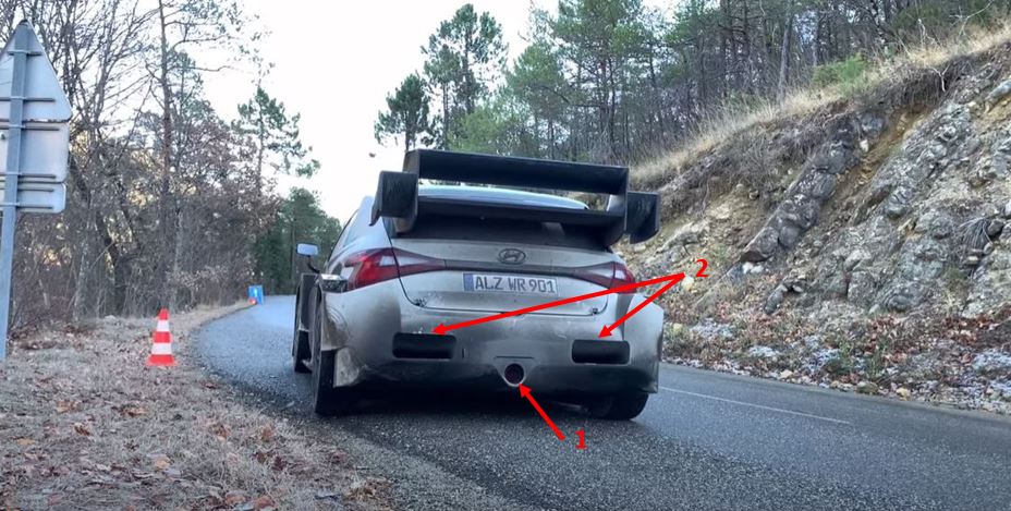 Chi sembra essere andato in una direzione leggermente diversa è invece Hyundai. Da quanto visto nelle ultime uscite la i20 ha adottato uno scarico centrale con le aperture sul paraurti che si sviluppano ai due lati. (1 e 2 in figura sotto)