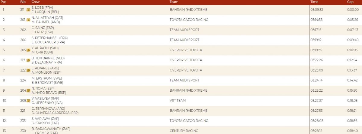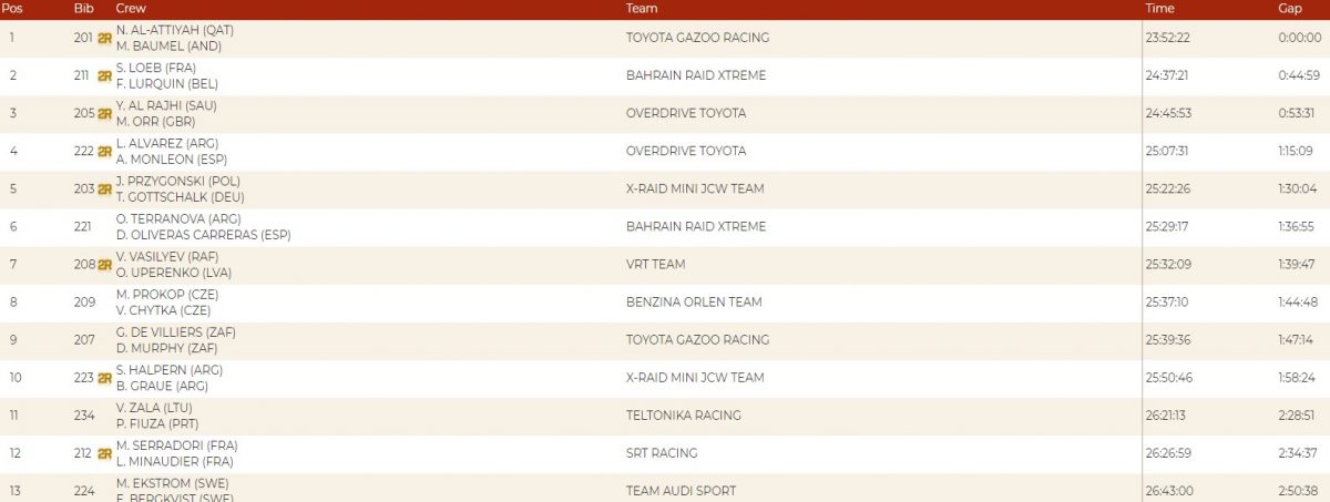 In condizioni come queste, ancora una volta, è stato Loeb a prevalere su tutti gli altri, mantenendo una media superiore ai 130km/h e battagliando con Carlos Sainz e Nasser Al-Attiyah fino al waypoint numero 4, posto poco dopo la metà del percorso odierno. Da lì in poi l’alsaziano se ne è andato, con buona pace degli inseguitori che alla fine non avevano interesse a prendere rischi.