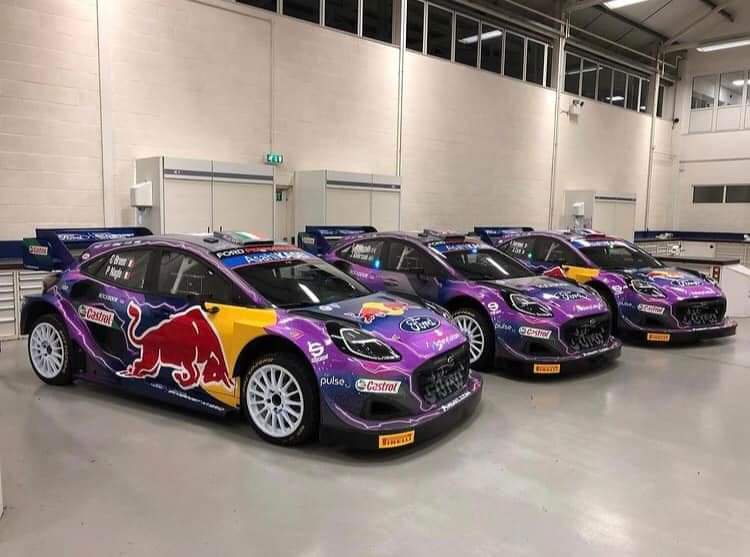 A vederla così non sembrerebbe che una normale sfilata ma, facendo un po’ di attenzione si nota un dettaglio particolare. Al centro c’è la Rally1 destinata a Gus Greensmith ed il fianco presenta un colore più scuro ed è evidente che manchi RedBull. Probabilmente sarà uno dei tre sponsor principali del pilota inglese a figurare sul fianco: Crown Oil, Gap o Rockdoor.