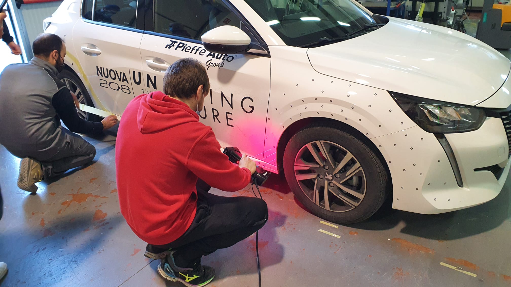 Prima di tutto serve ovviamente la macchina di serie, e a questo compito fondamentale ha pensato Auto Pieffe Group, che ha prontamente consegnato una Peugeot 208 nuova di zecca.