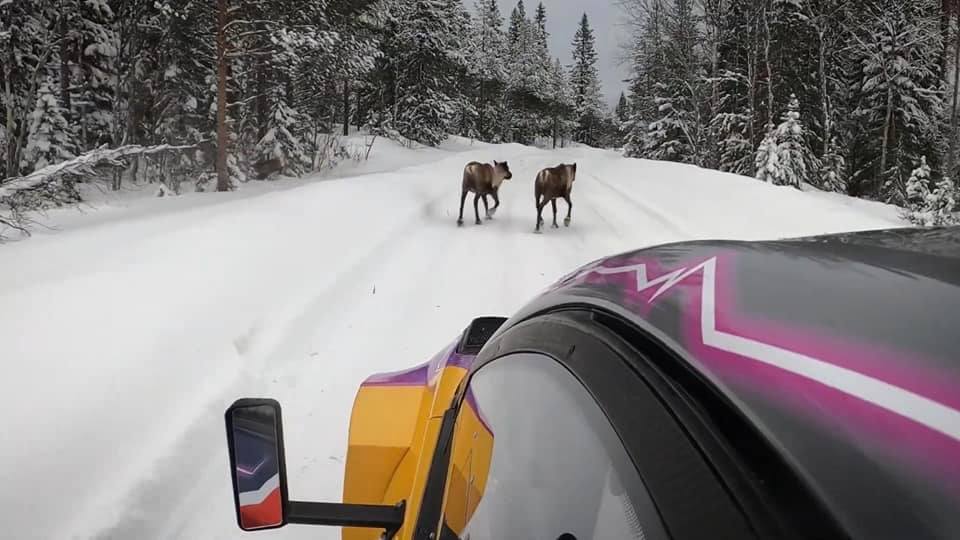 Nell’immagine un dettaglio ravvicinato del nuovo specchietto della Puma Rally1, ripreso durante il test del nostro Lorenzo Bertelli (alle prese con l’attraversamento di alcuni animali).