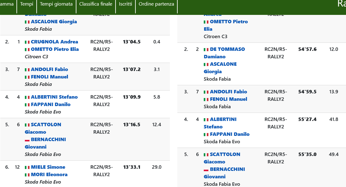 Davvero un grosso peccato dunque qualora Giandomenico e Lorenzo dovessero lasciare anzitempo la gara ligure, togliendo di fatto pepe ad una lotta per il vertice verificatasi ieri molto serrata ed entusiasmante.