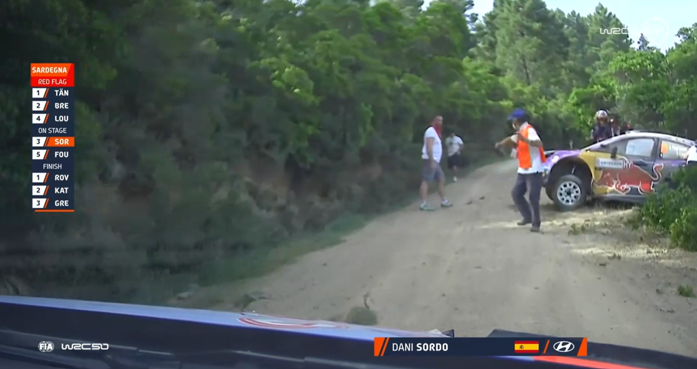 Bandiera rossa che fortunatamente non ha colpito tutti gli equipaggi, ma solo l’equipaggio di casa Hyundai, Dani Sordo, immediato inseguitore del pilota francese, che si vedrà assegnato un tempo imposto a conclusione della PS.17.