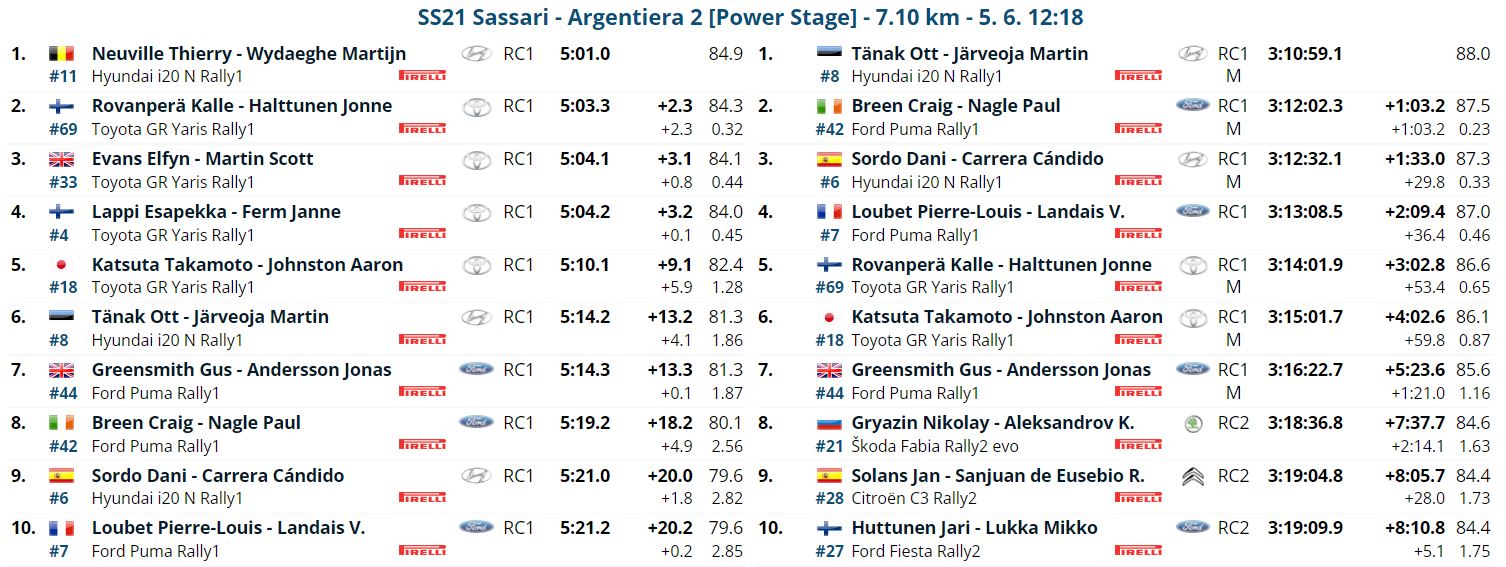 Soddisfattissimo anche Pierre-Louis Loubet che porta a casa il suo miglior piazzamento in carriera, quarto. Rovanpera limita i danni e allunga addirittura in classifica su Thierry Neuville. Il belga si consola con la vittoria della power stage, ma il weekend, per lui, rimane sicuramente amaro.