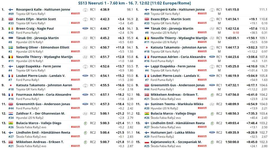 Uno scontro nato fin dalla prima giornata di gara e che visto i due contendenti scambiarsi diversi colpi sui filo dei secondi, ma che comunque vede Kalle Rovanpera prevalere sul compagno Elfyn Evans.