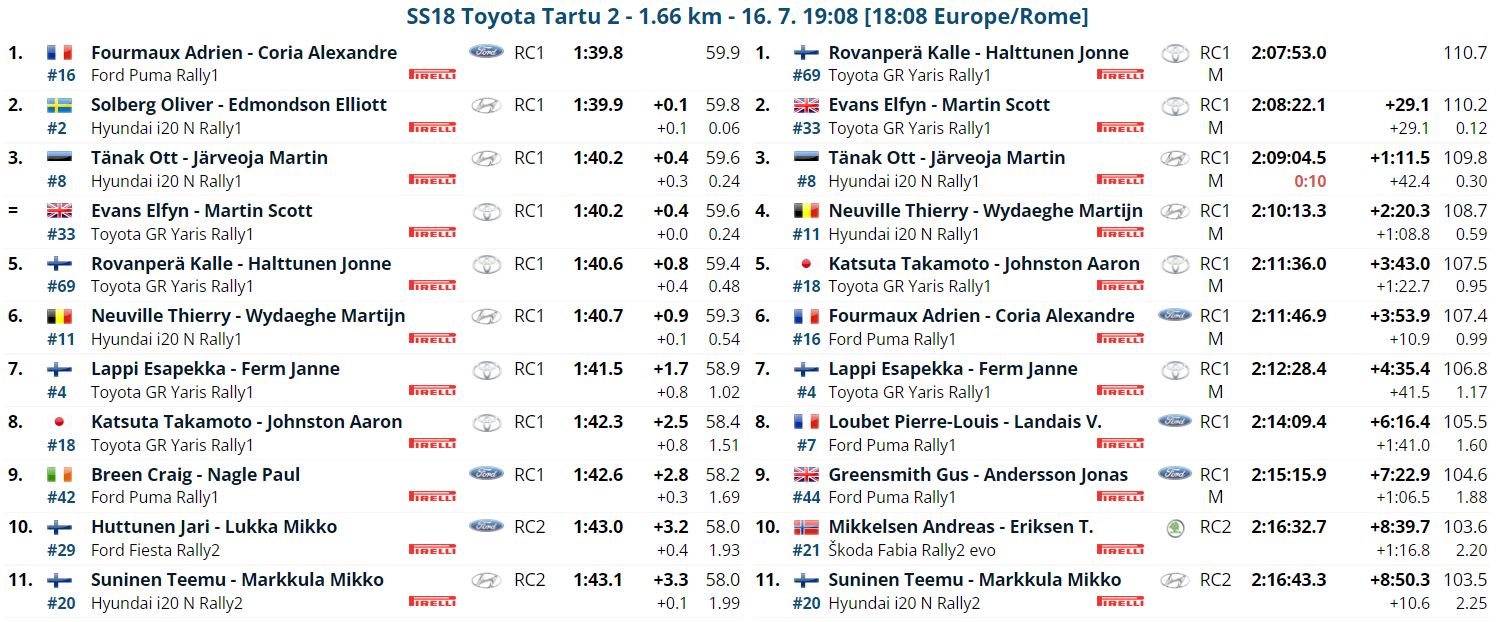 Rovanpera ed Evans hanno aumentato ancora il loro vantaggio sugli avversari. Tanak insegue, ma è distante