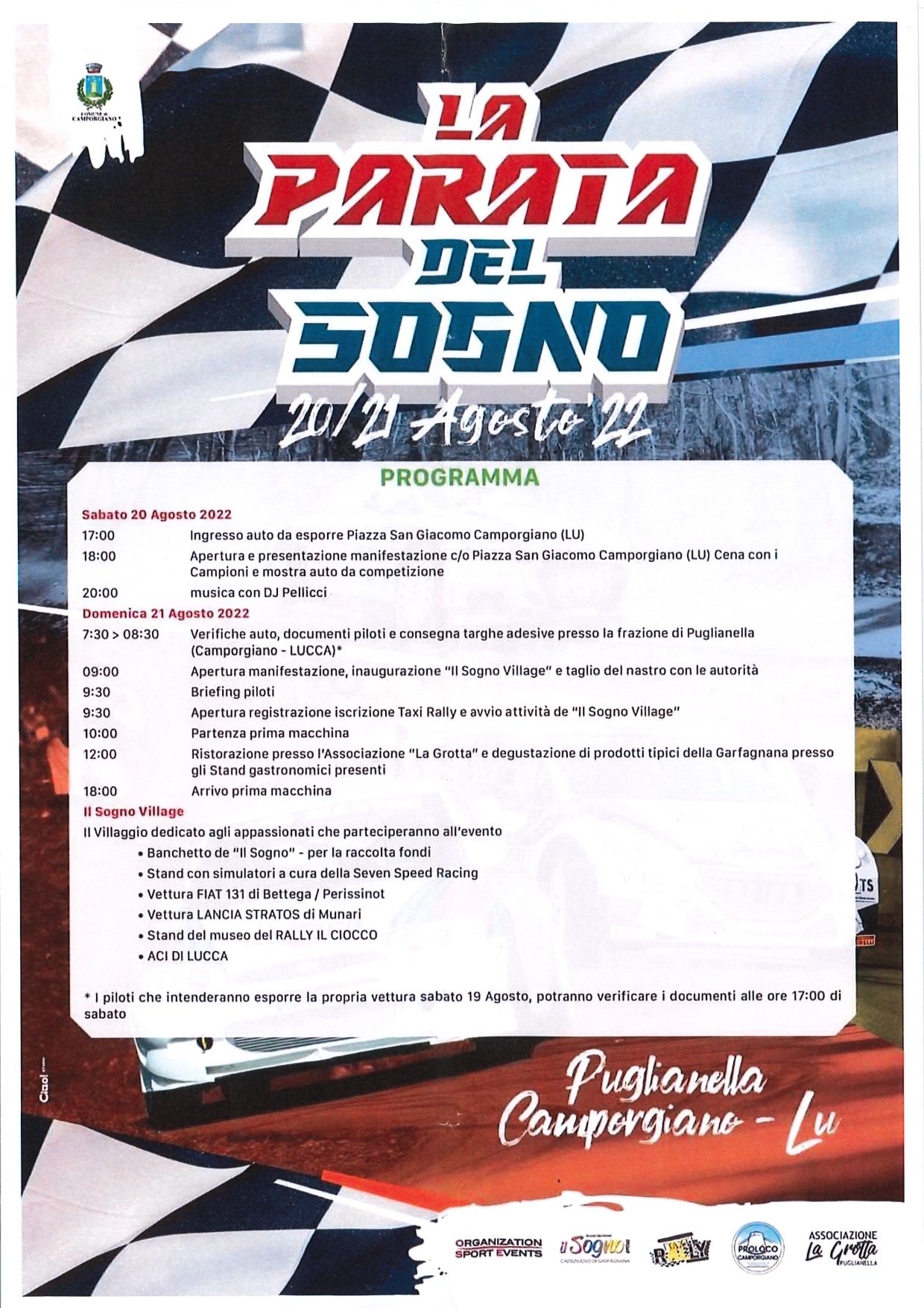 Dopo lo stop forzato delle edizioni 2020 e 2021, a causa della pandemia Covid-19, la macchina organizzativa della Parata del Sogno viaggia spedita verso il 20 e 21 agosto. Due giorni in cui la piccola comunità di Puglianella, nel comune di Camporgiano (LU), si trasforma nella capitale della solidarietà e della beneficienza.