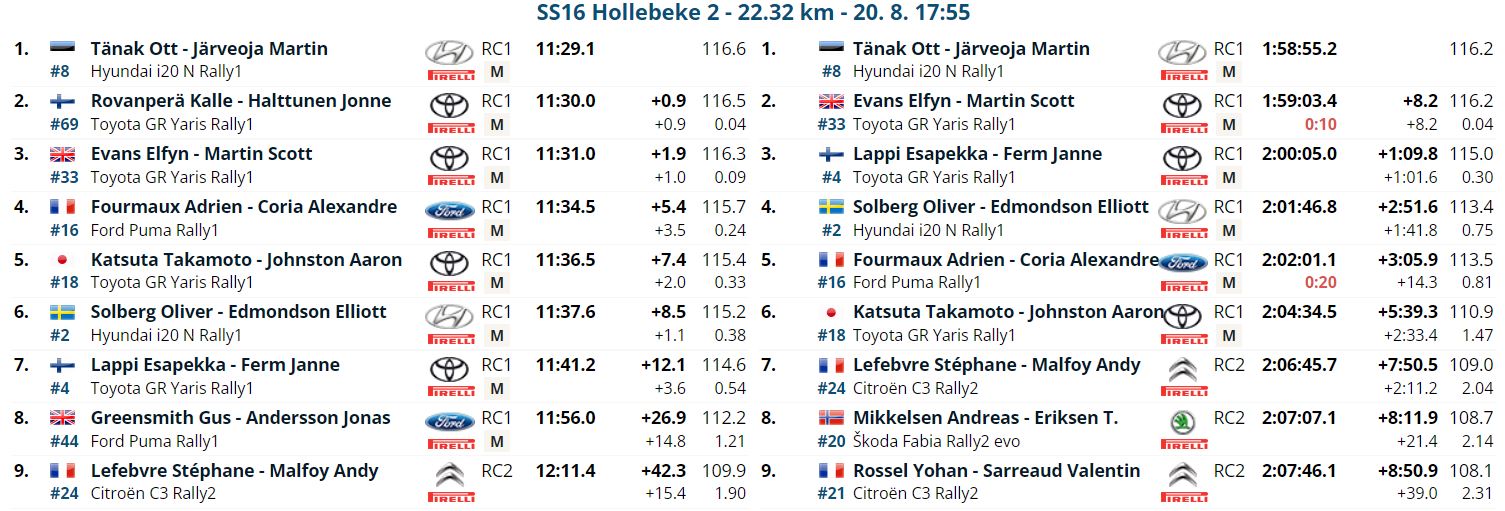 Bella lotta per il quarto posto fra Oliver Solberg e Adrien Fourmaux. Entrambi non se la sono vista bene negli ultimi tempi, ma la gara belga sta almeno regalando qualche piccola soddisfazione. Vero, il gap dai primi è comunque importante, ma arrivare al traguardo subito a ridosso del podio potrebbe significare molto per entrambi.