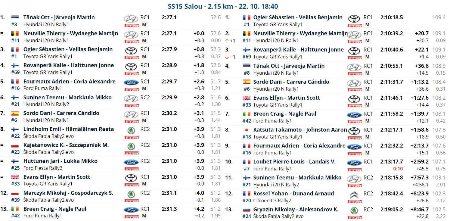 Dopo aver lasciato il primo passaggio sulla mitica Savallà a Thierry Neuville, Ogier ha vinto le successive tre speciali aumentando progressivamente il gap sul compagno di squadra Kalle Rovanpera. Ci si aspettava un attacco dal neo campione del mondo nei confronti dell’ingombrante compagno di colori, ma Kalle ha invece faticato per tutta la giornata, provando a cambiare set-up, ma andando nella direzione sbagliata e accusando grossi problemi di sottosterzo.