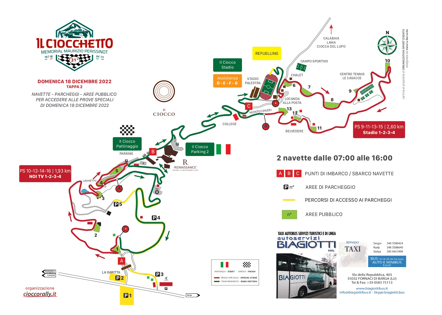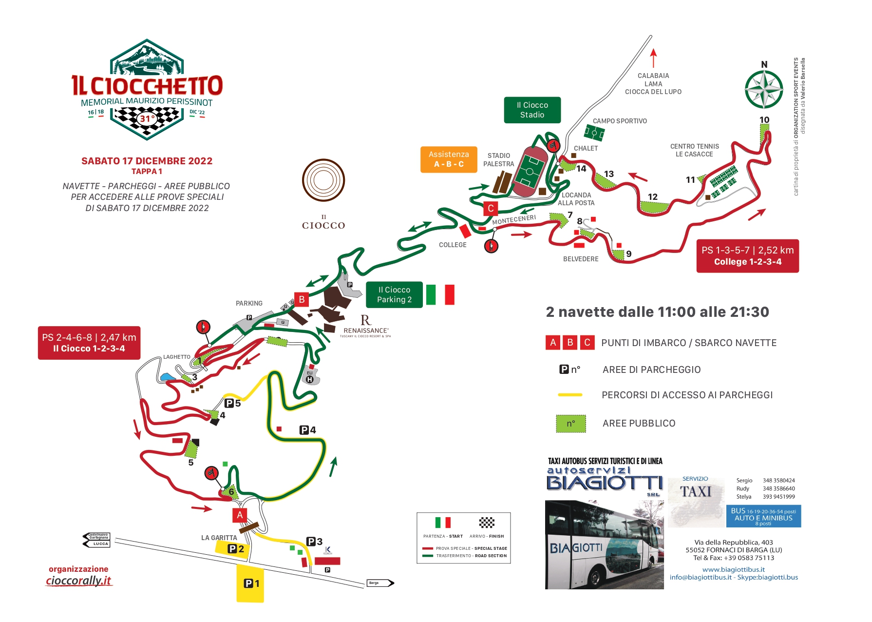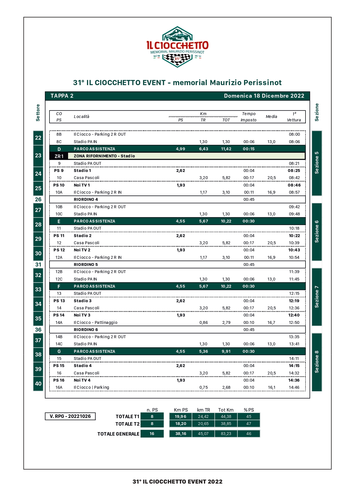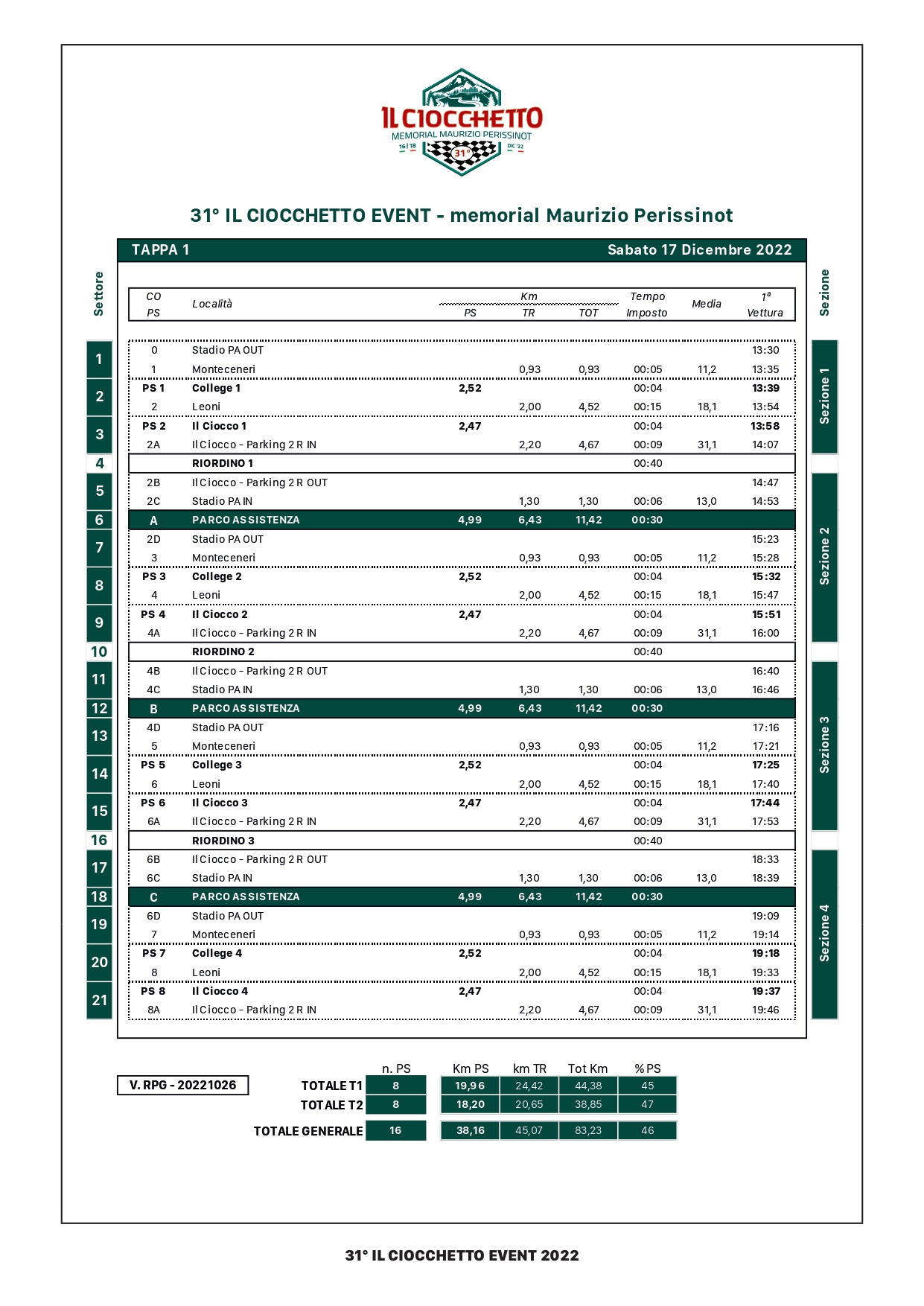 L’edizione 2022 del Ciocchetto Event si svilupperà su un totale di sedici prove speciali, suddivise nelle due giornate di Sabato 17 e Domenica 18 Dicembre, per un totale di 84,47 km su fondo asfaltato.