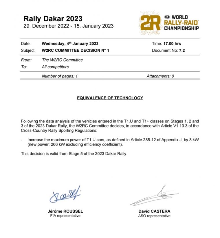Questo pomeriggio l’organizzazione del W2RC ha annunciato che dopo aver analizzato le prestazioni delle vetture di categoria T1.U e T1+ durante le tappe 1, 2 e 3, ha deciso di aumentare la potenza dei veicoli di categoria T1.U (8 kW a seguito dell’introduzione di l’Equivalenza Tecnologica (EoT) in formato variabile).
