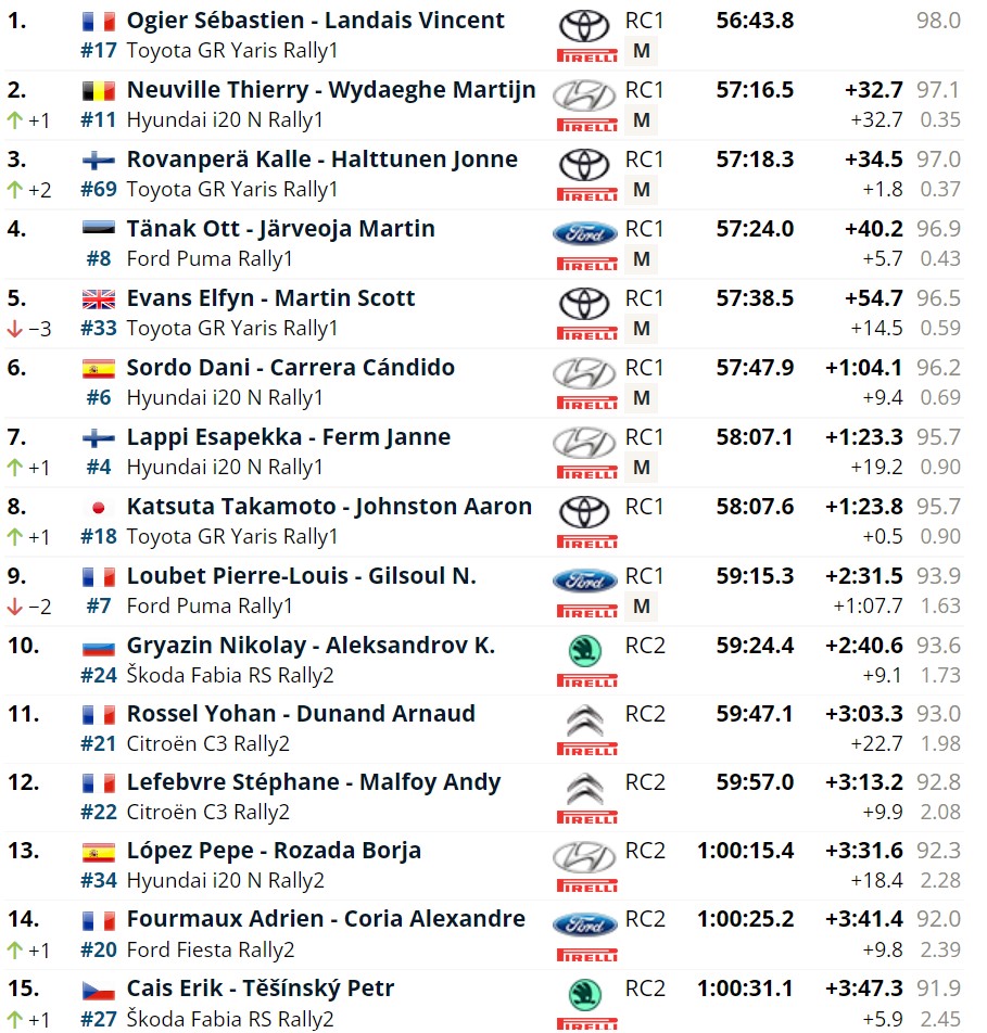 Classifica provvisoria Rallye Monte-Carlo 2023