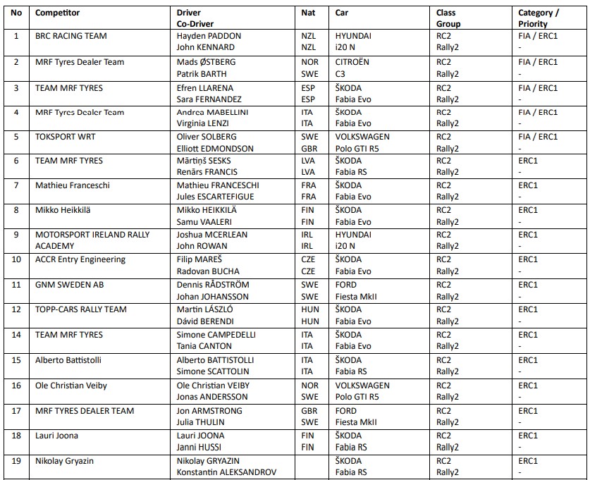 Di Oliver Solberg abbiamo giĂ accennato (al volante della sua fida e veloce Polo R5), ma c’è anche Nikolay Gryazin, per l’occasione con una Fabia di Printsport invece che con Toksport.