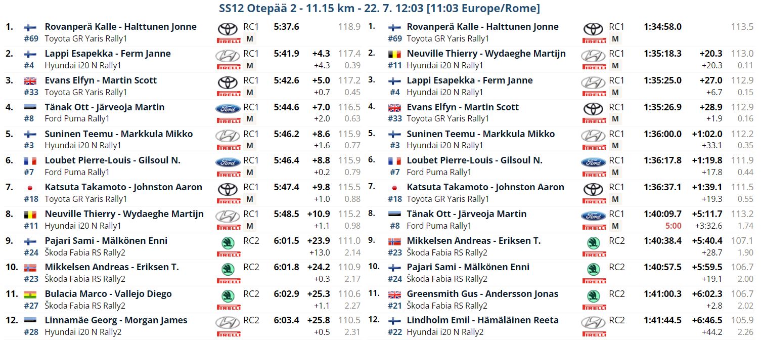 Lappi, sempre tra i più spettacolari alla guida, segue infatti con solo 6.7 secondi da recuperare, ed Elfyn Evans è subito dietro ad 1.9 dal finlandese. Si prospetta quindi una incredibile battaglia per i rimenenti due g