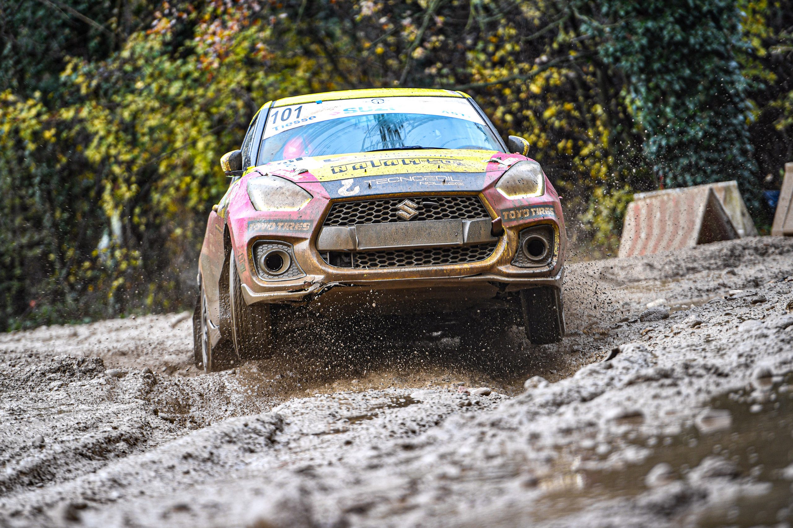 Nelle rotaie scavate e nel fango le Suzuki Swift Sport Hybrid sono riuscite ad andare avanti, dimostrando di essere macchine robustissime e veloci anche in condizioni difficili.